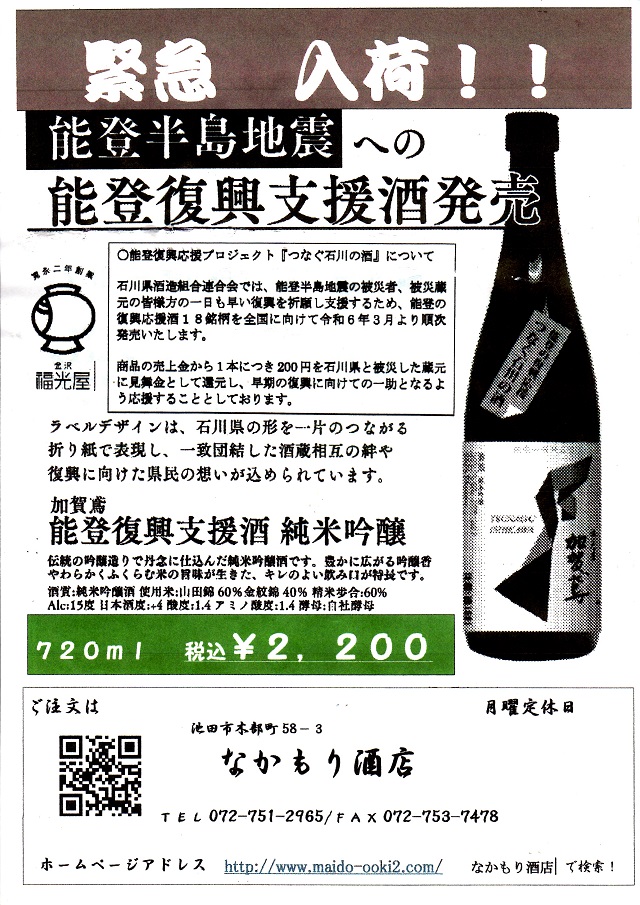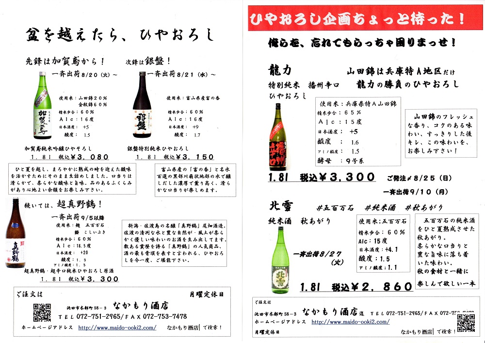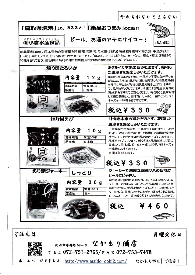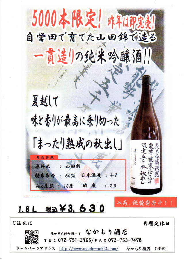 なかもり酒店は大阪府池田市にございます、お酒の専門店です。北摂の地酒をはじめ、限定酒や希少価値が高い珍しい銘柄まで、豊富に取り揃えております。専門店ならではの「品揃え」「知識」「鮮度」で、皆様の食卓に笑顔と日本の文化をお届けしてまいります。どうぞお気軽に立ち寄りください。